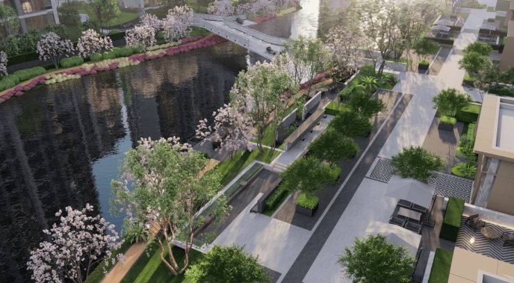 项目由两条天然水系穿流而过,形成了上海罕见的三座天然“岛屿社区”。