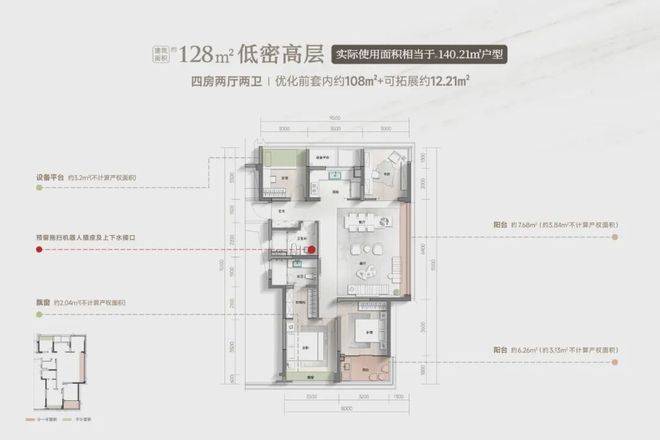 139㎡四房两厅三卫:【实现岛台空间+4房+1功能房】功能升级,实际面积相当于市面上在售160㎡使用面积