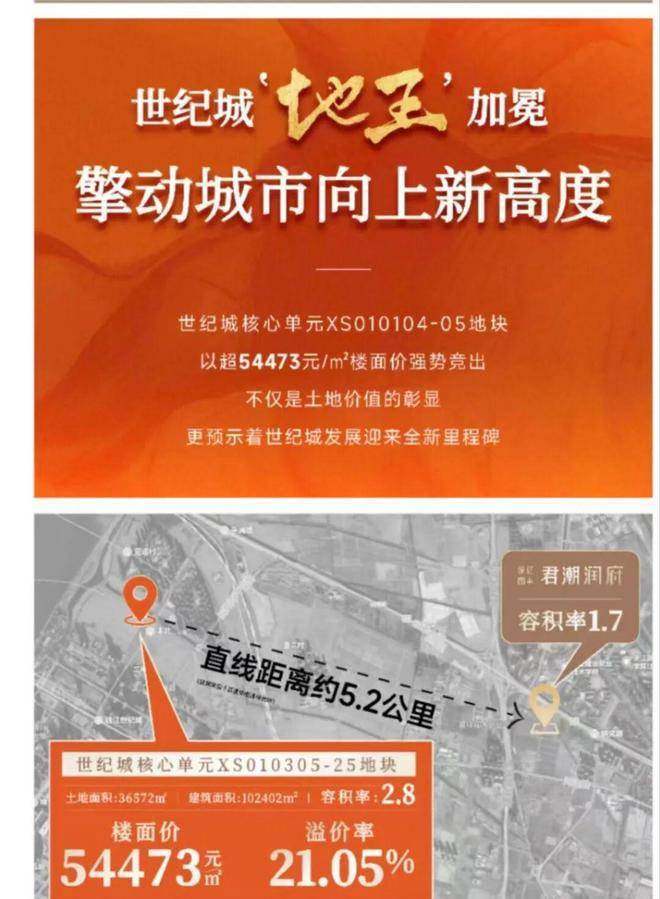2025年世纪城土拍屡创新高,涉宅用地平均溢价率超35%,项目相连板块楼面价基本3.5万/㎡,6月诞生新地王,楼面价54473元/㎡,与君潮润府直线距离仅5公里左右