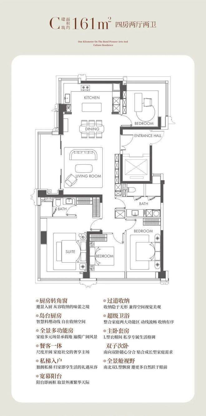 建面约124㎡灵阔舒居,入主外滩的优雅序曲