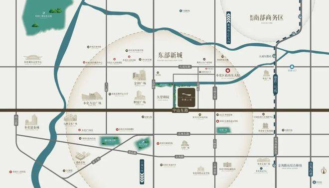 中山东路主轴串联万达广场、金钟广场、银泰城三大商业体,都会繁华举步可达;双水系公园环绕的生态基底,与未来规划中的优质教育资源、高端医疗配套,共同织就“出则繁华,入则静谧”的理想生活图景。