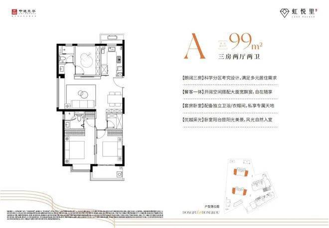 产品方面,中建虹悦里整盘248套房源一次性入市,从建面约79㎡精致2房,到建面约91-99㎡轻奢3房,多元户型总有一个适合你。