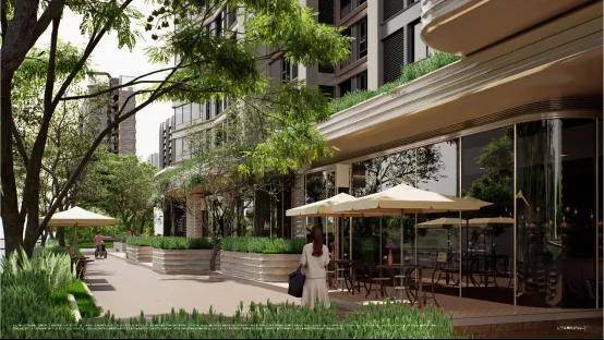 在社区外,中环麓岛打造了约1.5公里生息街道!在市政道路和项目建筑之间,额外创造出属于社区的公共空间。