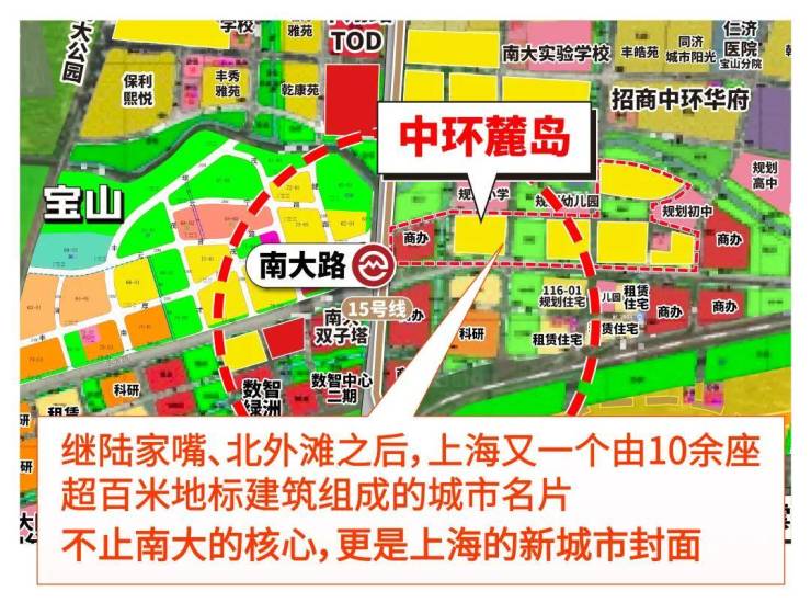 以南大路为核心,周边约100米范围内多座超100米,最高约250米的地标建筑。这里不仅是南大的产城融合中心,更是继陆家嘴、北外滩、前滩以及徐汇滨江的下一个地标建筑群。