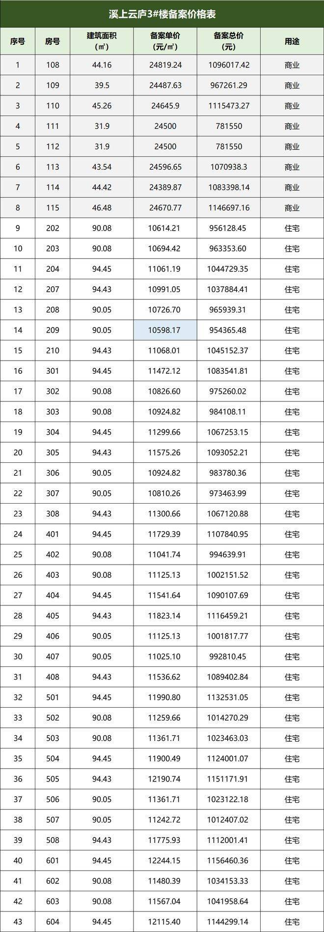 住宅备案价: