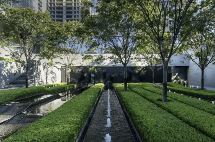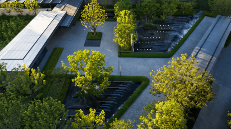 在树种选择上,不仅都是全冠移植,精挑细选,门口的香樟树,更是团队行上万公里,挑千棵树后才找到的。