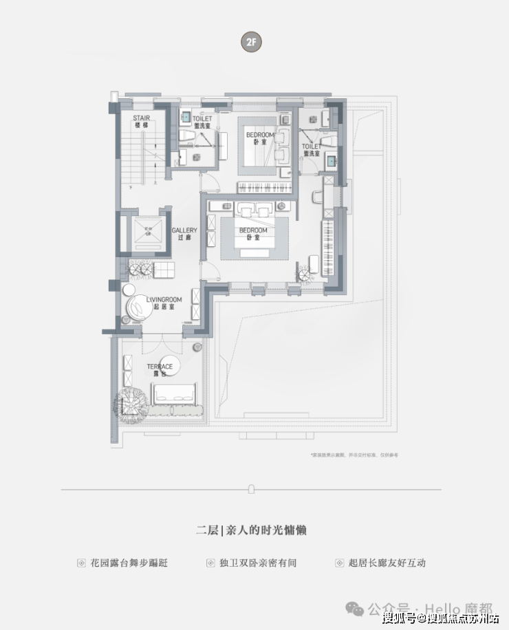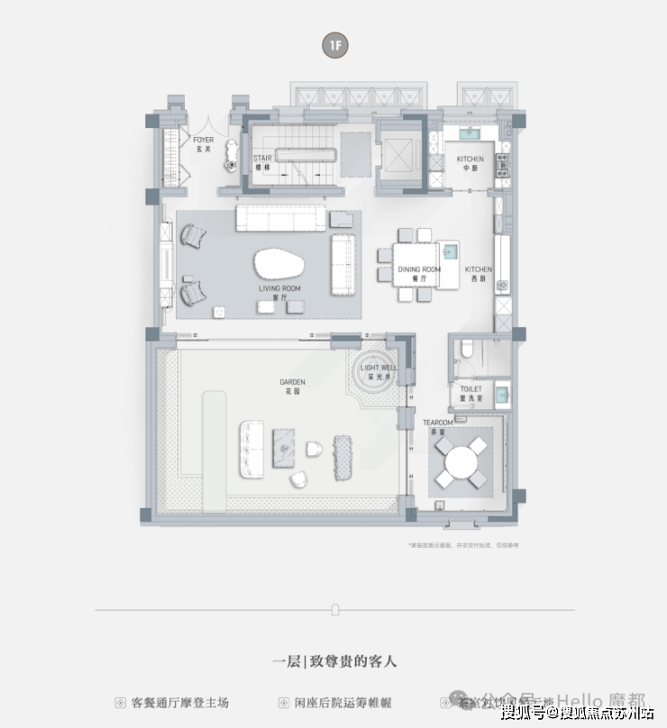一层长辈套房设计,南向独立小庭院,莳花弄草,晨练太极自在四季
