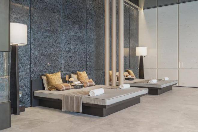 在纽约安缦酒店的静奢美学启示下,松川境以约1500㎡下沉式会所「隐松庭」,重构世界奥体的高阶栖居范式。围绕下沉式庭院,泳池、健身、瑜伽等功能空间依次展开。