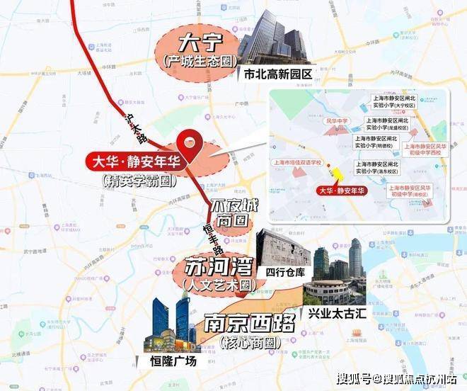 项目步行约900米范围内,风华中学、闸北实验小学两所口碑名校环伺。