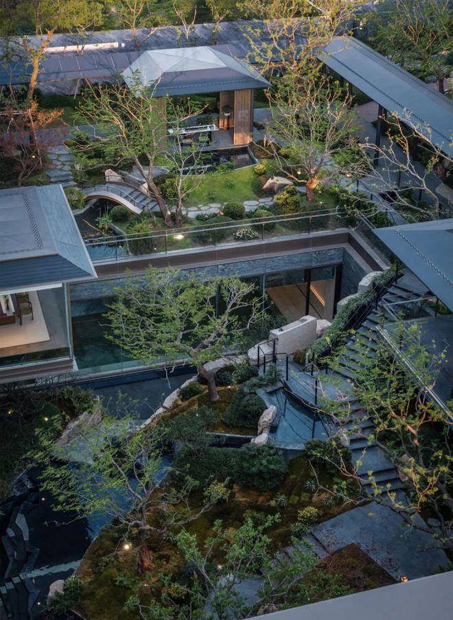近460㎡的下沉式庭院,精选太行山金景石堆叠成小山丘,溪水,并移栽岭南珍贵的古桩铁冬青和中华原生乌桕树,寓意“聚财守业”!