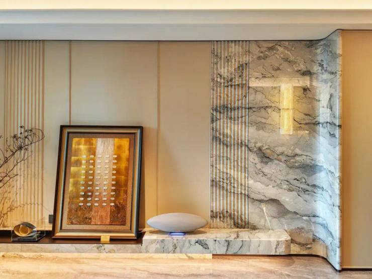 通室整体选择了全新升级的奢石、奢板、奢皮、奢镜混合搭配,将静奢海派的艺术感展现的淋漓尽致。