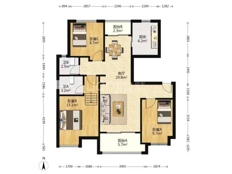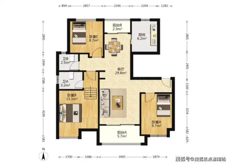 刚需房就要考虑三代人同住或者一家四口居住对房间数量的要求,这样考虑的话,房子最少应该是三居室,那89㎡的紧凑型小三房就更合适。