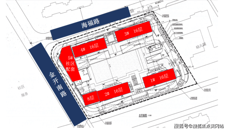 目前设计方案已发布,项目主要由4栋16层住宅组成,还有1栋社区配套。