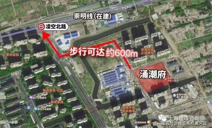 距离崇明线一期凌空北路站(在建)直线距离500米,步行约650米。