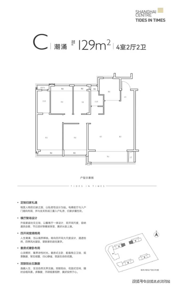 涌潮府,首开253席限量入席,户型为建面约88㎡3房2厅1卫,95、97㎡3房2厅2卫以及129㎡4房2厅2卫。