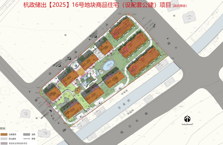 园林中有景观水池、下沉庭院、集中绿地等。叠墅分布于小区东侧,也就是靠近招商杭序府这边。