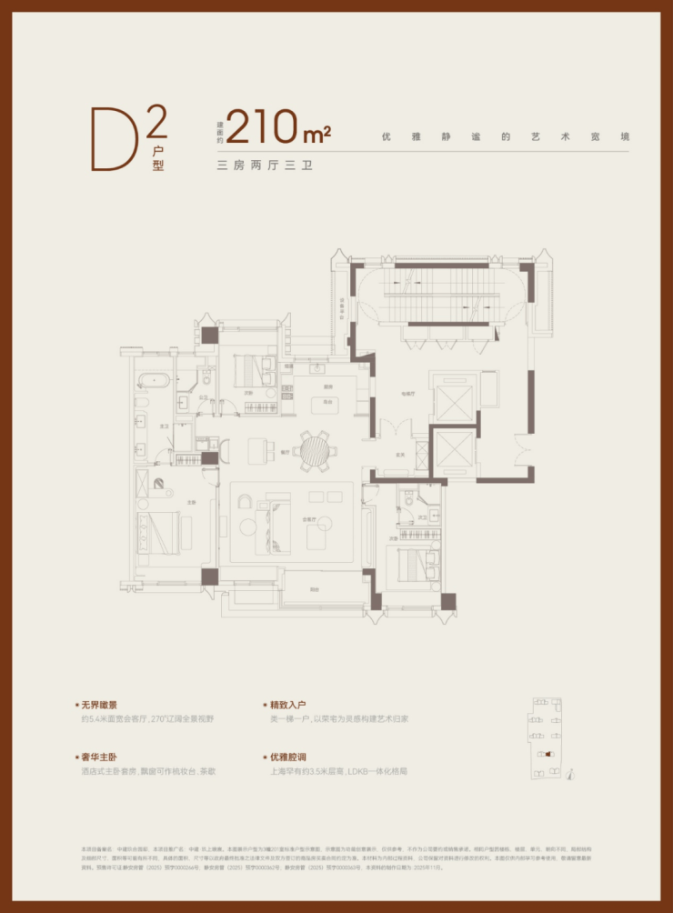 【3#210㎡户型】——南向俯瞰下沉式庭院,北侧私藏浮光池院。