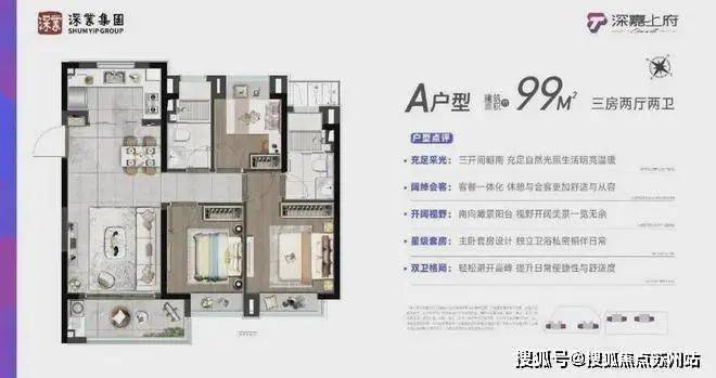 建面约88-99m²品质3房