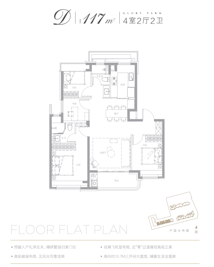 4房2卫 的设计,这个户型可以承载三代同堂的全生命周期需求,实用性拉满。也是四口之家,二孩家庭的最佳性价比选择。