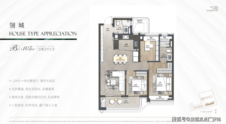 本次项目主推建面约105㎡3房2卫: