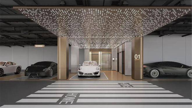 比如,对标五星级酒店打造的双精装入户大堂,地下大堂配备“劳斯莱斯”同款星空顶,就连地库入口都是硬质石材铺装。