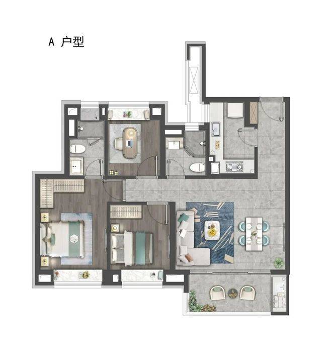 建面约99㎡3房2厅2卫(边套)