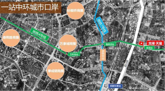作为与主城衔接最紧密的板块,项目与成华中环直线距离约2km,通过地铁4号线一站直达中环、两站万象城商圈、五站春熙路商圈。