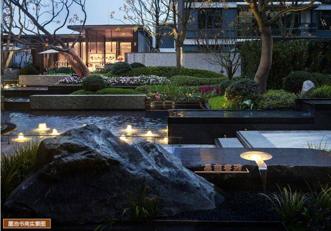 项目特意保留芙蓉书院重要习俗传承——洗砚池(也称“墨池”),以黑灰色为基调,特选臻植+奢石为底,打造墨池质感。
