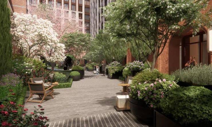 秩序与节奏是景观设计的基本表现形式,突显园林之美的同时也具备实用性。项目特别设计由宽入窄的线型园林,充分利用了每一寸空间,从开阔的弄堂巷道,到专属的私家庭院,也对应着从开放到私密的归家心理变化。