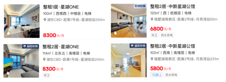 参考独墅湖同类型产品,80㎡户型月租金可达5500-6000元,部分装修较好的租金还能更高。再参考同处园区核心的星湖ONE,百平左右月租到8000元。粗略估算,这些产品的租售比超过3.8%,已经跑赢了通胀和银行利率。(数据为年租金/房价的估算,仅作为参考)