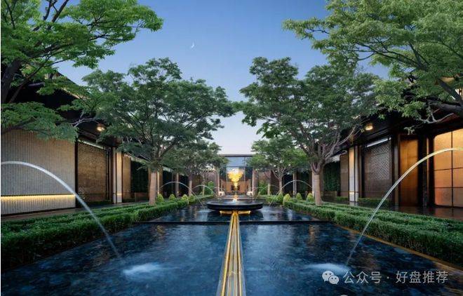 景观设计上,将东方园林造景的意境与意大利海派风格相融,中轴对称,以两轴两园三进礼序,打造高奢酒店式艺术生活园境。