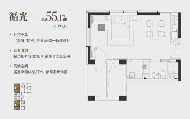 C|循光|建面约55.17 m²|一室一厅一厨一卫