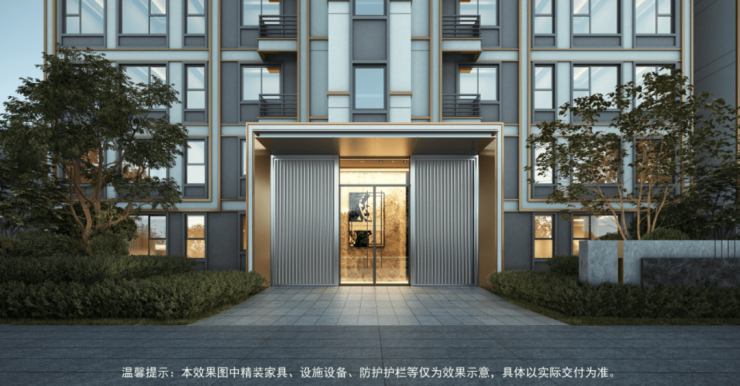 整个社区呈现代轻奢风格,高层和洋房有序排布,从风、光考量,社区呈南偏东15度建筑排布,最大楼间距约43M,采光与清风常伴。