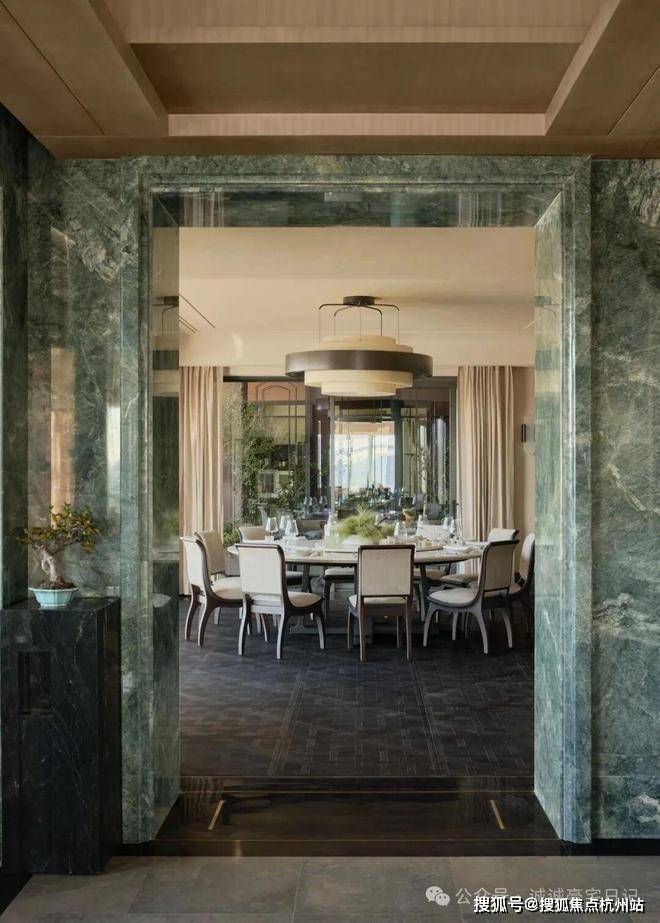 从选材来看,各种奢侈品级石材随处可见,比如与北京钓鱼台国宾馆同款的意大利进口鱼肚白石材,造价高达约2万/㎡,被誉为“世界上最贵的石材之一”!