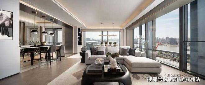 ·建面约240㎡边套,采用L型转角落地窗,✅✅保利世博天悦售楼处电话:400-9016-520✅✅打造了270°环幕瞰江视野,无论身处客厅、餐厅,都能以不同角度眺望黄浦江的波光粼粼。