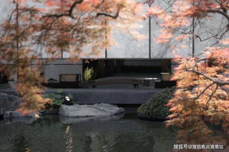造型精巧别致的轩堂翼然临于水面之上,轩堂的设计意承中国传统文化底蕴,延续东方传统美学风格,提取中式特色元素,用新工艺和现代审美重新加以演绎,在造型上力求简约,在细节上精细刻画,打磨出一个清新典雅、细腻精致作品。休憩于轩堂中,丹枫、苍松、灵石、秀水环绕身边,品茗、赏景、吟诗、会友,不亦乐乎!