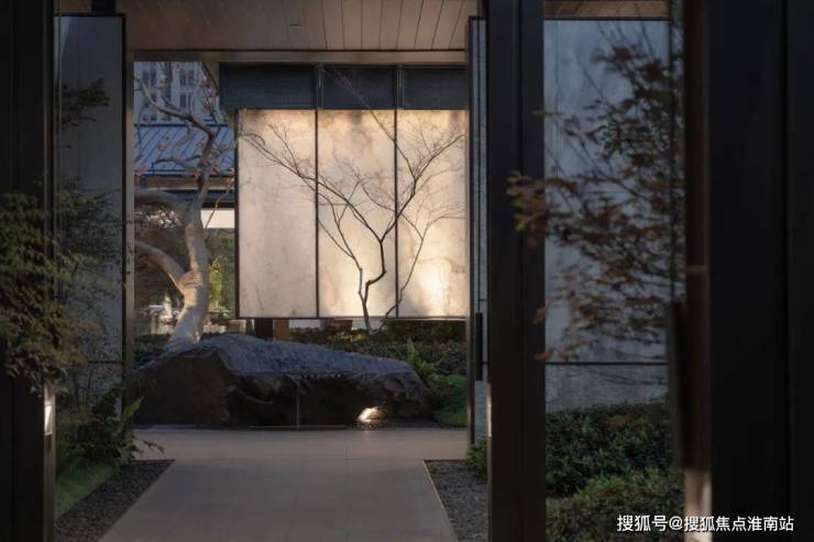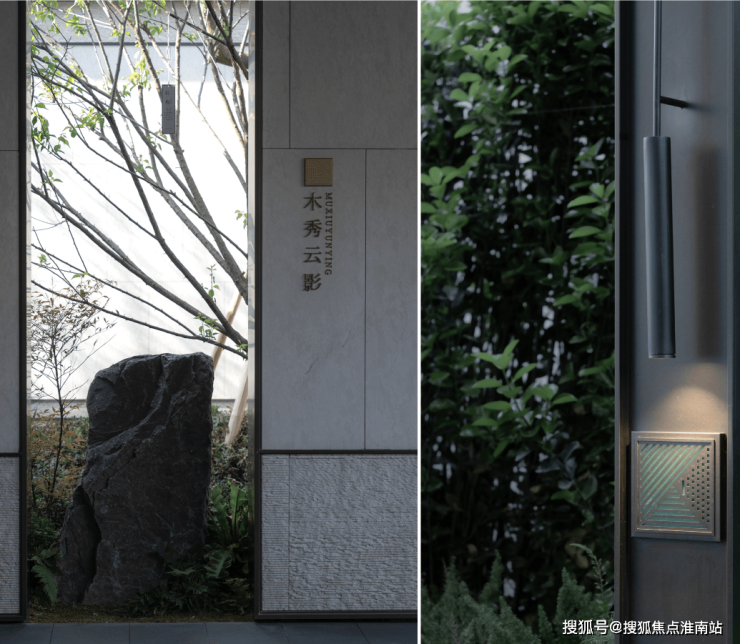 行至院落,忽闻清音袅袅,循声而入,绿意浓浓,精致窗门下感受幽雅的渗透空间。运用夹景的手法,左右两侧景墙加以屏障,使景观空间延伸至景观焦点,一树、一石、一光,叶疏影秀,小中见大。