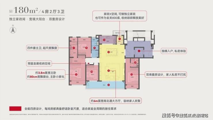 在优越的空间利用率面前,其它闪光点都成了锦上添花。但基本上市场大平层必备的要素,ta都有——标配大横厅、标配洄游结构、标配动静分区、真南北通透等等。