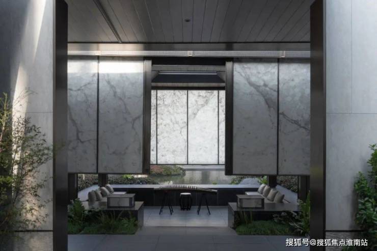 基于场地周界三面均为老旧住宅区,为了延续城市构想,在老旧城市界面中提升产品形象,景观希望用设计保留古典园林中的东方韵味,取法留园师法艺圃,再现东方门庭风度,力求打造一处藏于城区中可见山水、可见四时的东方藏品大宅。