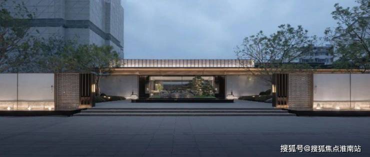 从之前公布的效果图来看,项目的门头采用了古铜铝板+石材打造,融入了白墙灰瓦、劲松流水等江南园林景观元素。