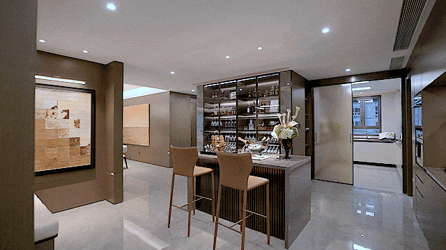 约21.1米超长南向四开间面宽,整个尺度超级奢阔,完全就是城市会客厅的气度,哪怕在此邀约生意伙伴,举办一场以酒会友的酒会,都排场十足。你若是去过现场,感受一定还要强烈。