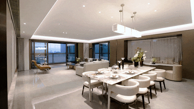推门而入,瞬间攫住所有目光的气场,正是大平层本该有的模样。迈入样板房的一瞬间,相信几乎没有人能够抵挡得住眼前的惊艳: