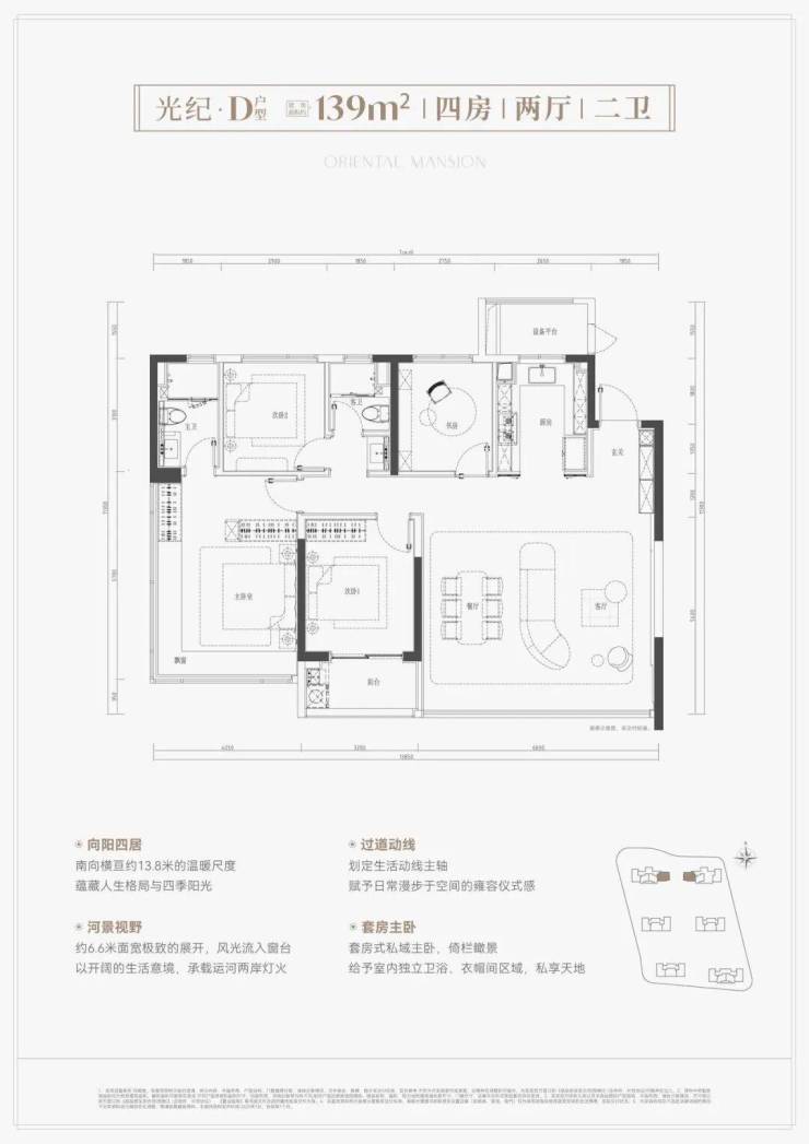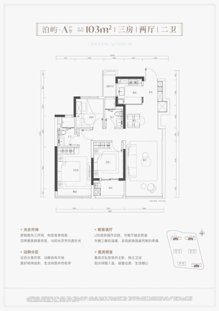 户型覆盖103-139㎡,主打高实用性和功能改善,宣称的约94%的得房率是一大卖点。