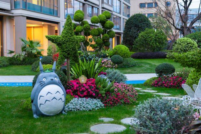 望品采用名贵树种成品全冠移植,并且运用堆坡的技术以及高低不同的灌木乔木等植株,将巨大的集中园林巧妙地分隔成了高低错落的多个小花园。