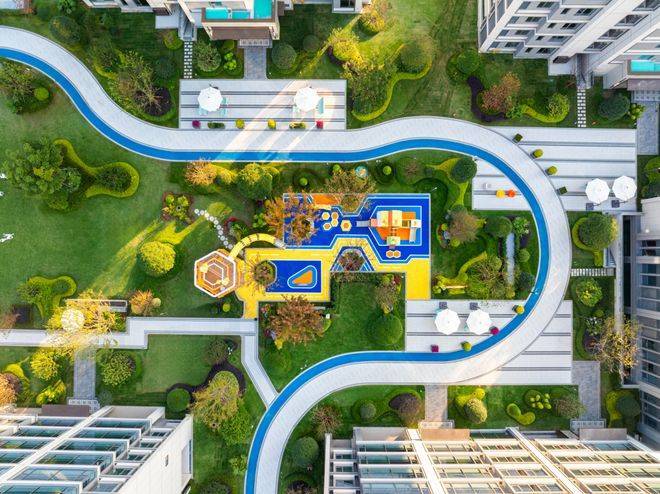 而且你看,童乐区同样被植被包围,这些树木长开之后,会成为夏天里的一把把天然的遮阳伞,不仅能起到遮阳的作用,更能为孩子们创造一个亲近自然的环境,这是从真实的生活出发,才能有的贴心设计。