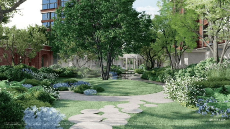 印象派秘境花园:约3000㎡围合式中央花园,被打造成“流动的艺术展”——草坪似马奈笔下的日光,繁花复刻雷诺阿花园,水边光影映着莫奈睡莲与梵高星空,回家就像逛美术馆。