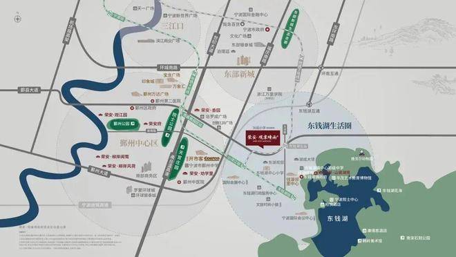 荣安观棠晴雨府还有一个突出的优势,其紧邻东钱湖旅游度假区,距离东钱湖湖滨公园2.7公里左右,附近还有龙湾公园、渔金公园等等,生态环境优越。