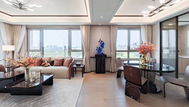 来看看建面约226㎡的超大视野客厅,你便能感受到这种一览无余的美好景致,仿佛生长在公园里。