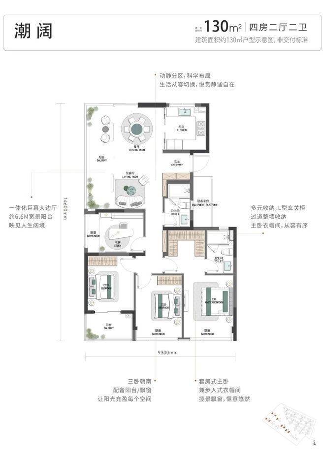 再来看项目的四房户型,有建面约127方、约130方2款。