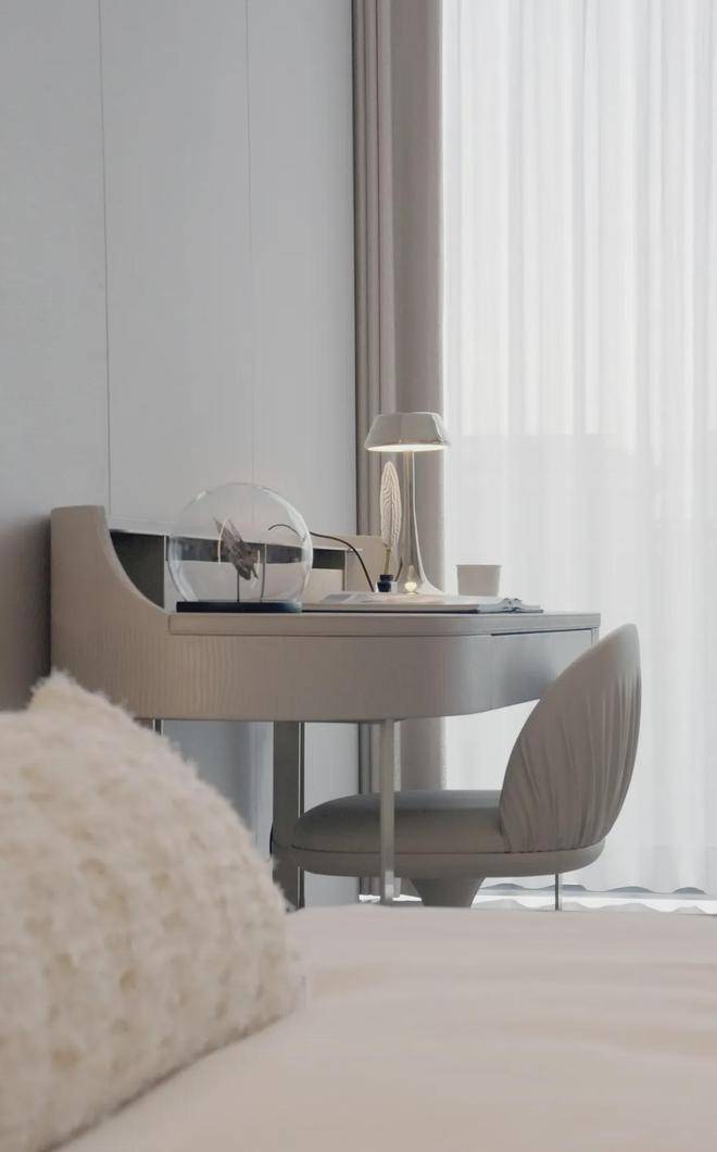 约450㎡“香奈儿”西边套,将原本多见于餐桌和墙面的白金沙奢石,漫铺于双厅地面之上。浅淡得宜的洁白,温润如玉的蜜色,将空间衬得时髦优雅。能眺望钱江两岸的梦幻天际线,“宇宙中心”奥体尽收眼底,也能俯瞰城市霓虹,车水马龙就在脚下。整个中心的璀璨世界定格在落地窗前,像一张巨幅明信片。